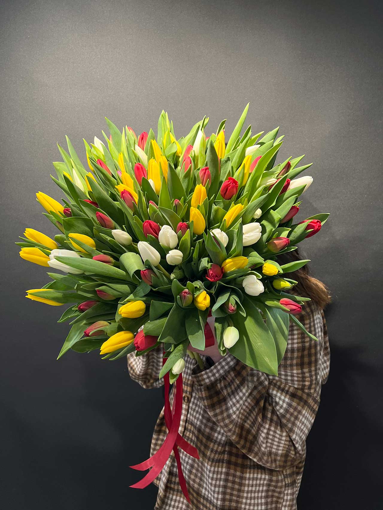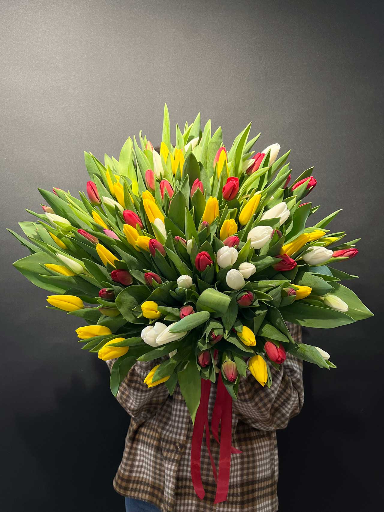 101 тюльпан под ленту — букет, который говорит «ты для меня особенная»