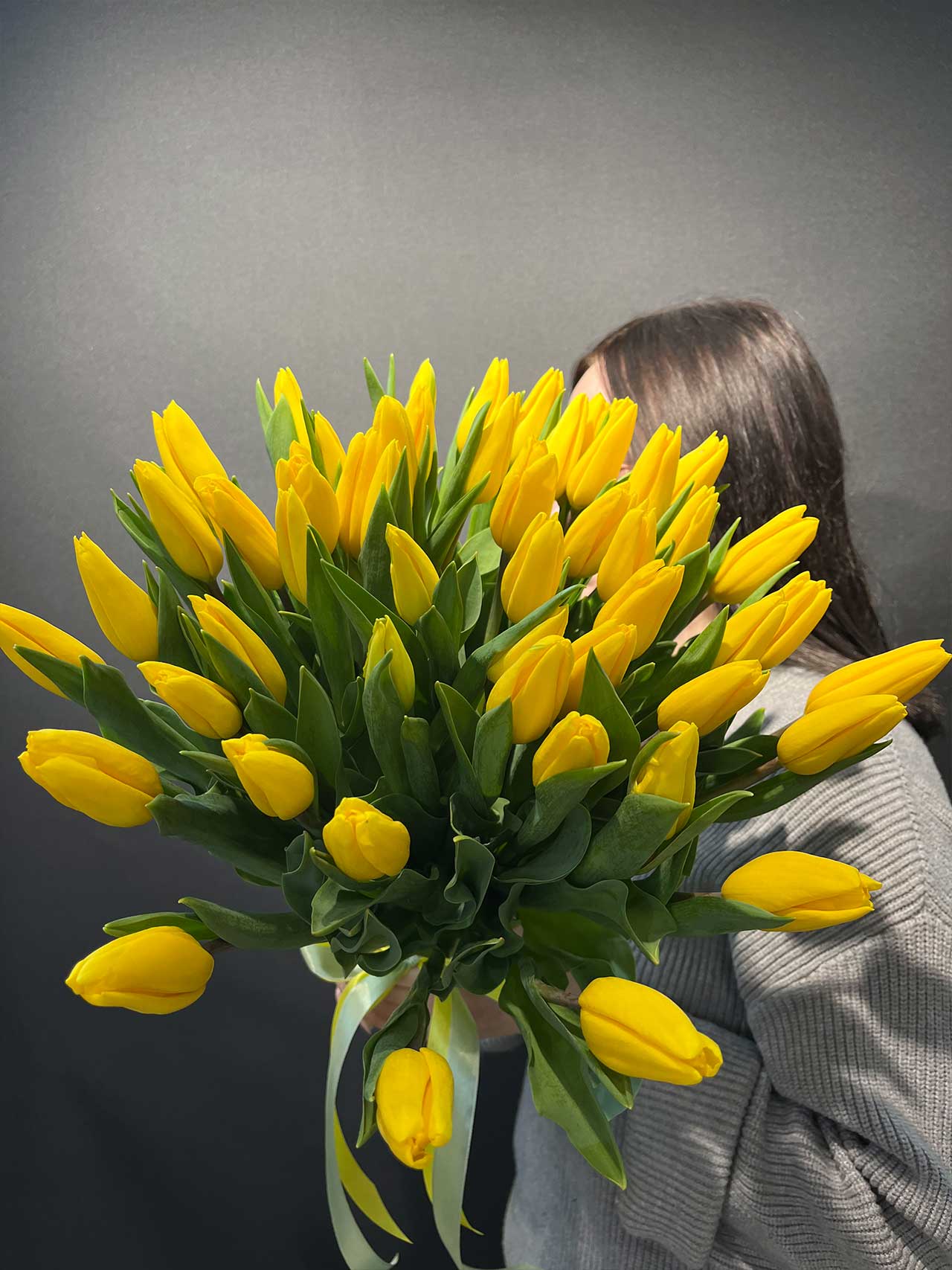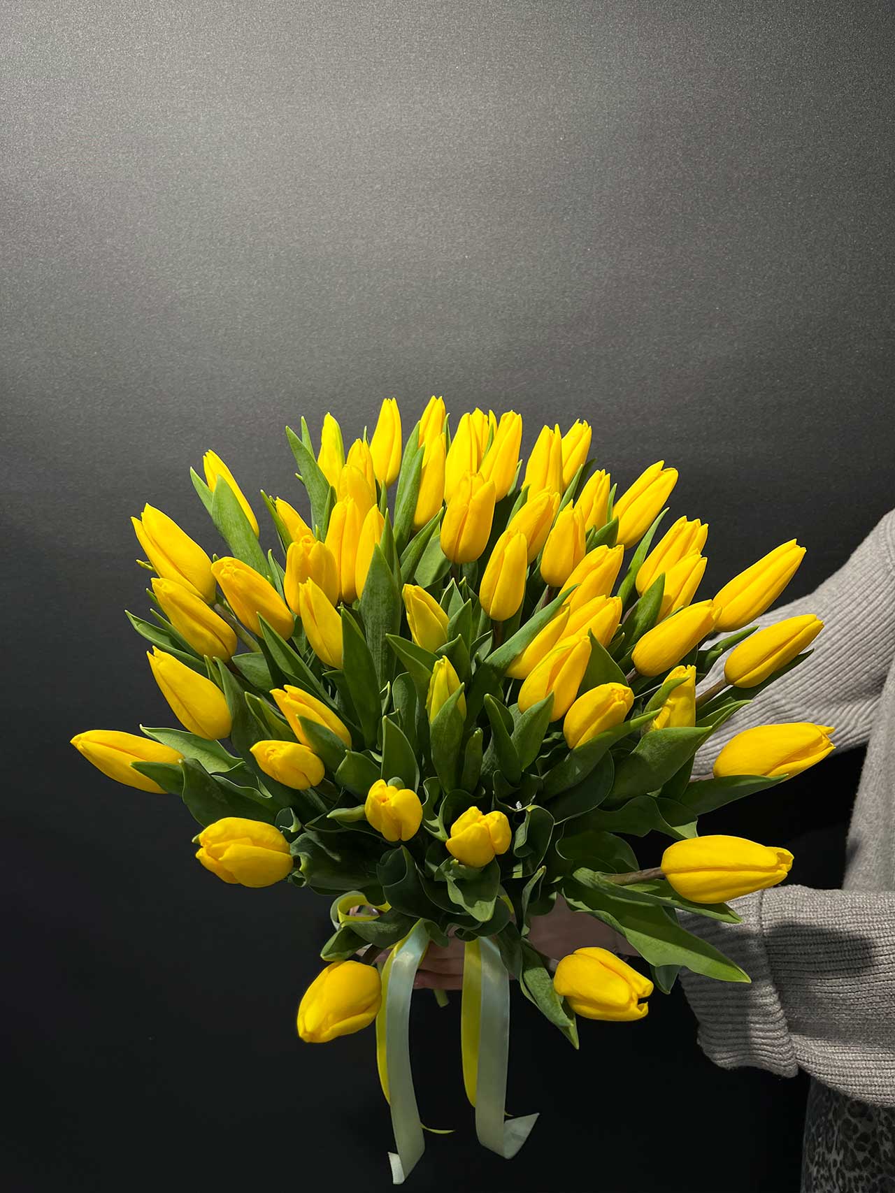51 жёлтый тюльпан под ленту — выбор для тех, кто хочет подарить эмоцию и оставить после себя светлый след.